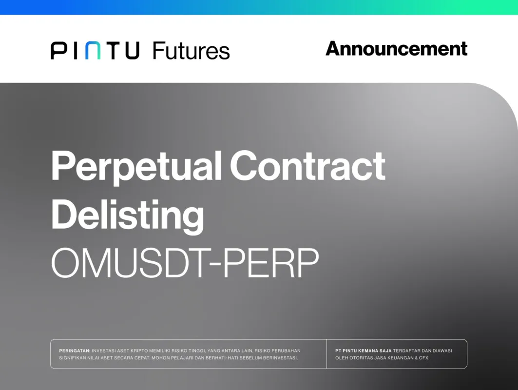 Berdasarkan peninjauan yang telah dilakukan, kami memutuskan untuk melakukan delisting dan menghentikan perdagangan untuk OMUSDT-PERP di Pintu Futures. Bagi Teman Pintu yang memegang token tersebut, berikut informasi yang harus diperhatikan: