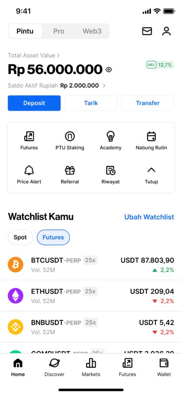 Kabar gembira untuk kamu pengguna setia Pintu! Sekarang, akses ke Pintu Futures bisa langsung dari Pintu dan Pintu Pro. Dengan tampilan yang lebih sederhana dan mudah, trading futures dengan leverage up to 25x jadi lebih mudah buat semua trader!