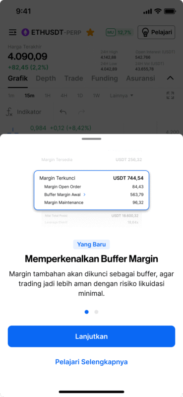Initial Margin Buffer adalah fitur baru yang membuat sebagian saldo margin kamu dikunci lebih besar dari sebelumnya. Artinya, available margin yang bisa kamu gunakan untuk membuka posisi baru akan sedikit berkurang, tapi kamu mendapat ruang tambahan sebelum posisi terkena likuidasi.