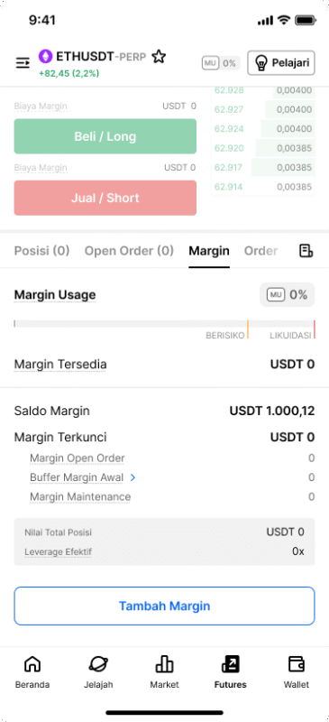 Catatan: Harga likuidasi dan persentase penggunaan margin tetap sama, yang berubah hanyalah jumlah margin yang terkunci.