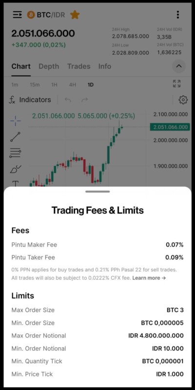 - Maker fee 0,07% dan taker fee 0,09%. Hemat lebih banyak, profit lebih maksimal.