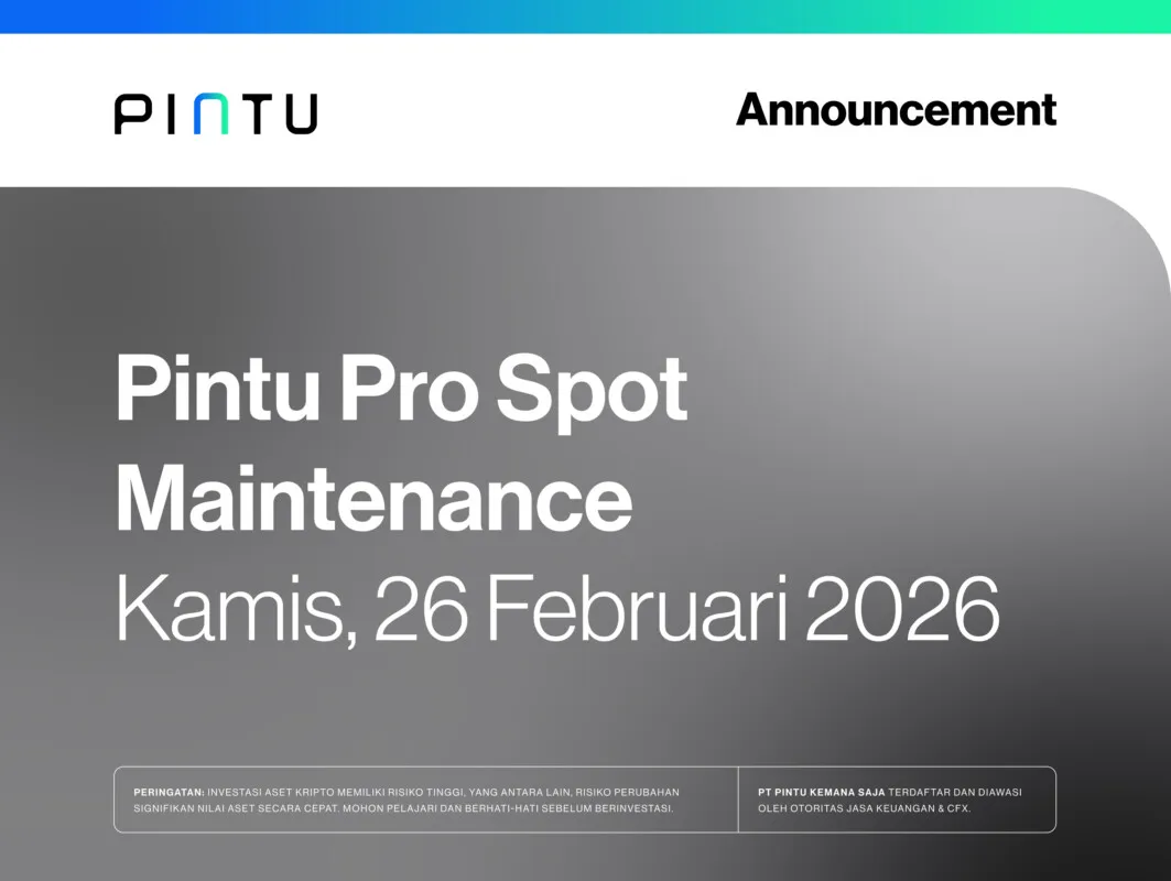 Untuk meningkatkan pengalaman trading pengguna, tim Pintu Pro akan melakukan maintenance. Terkait dengan hal ini, berikut beberapa hal yang perlu diperhatikan: