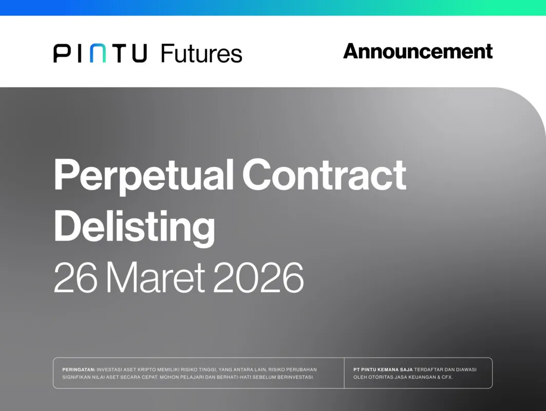 Hi Teman Pintu! Kami terus berusaha memberikan pilihan crypto yang terbaik untuk investasimu. Oleh karena itu, berdasarkan peninjauan yang telah dilakukan, kami memutuskan untuk melakukan delisting 37 kontrak futures pada tanggal 26 Maret 2026.