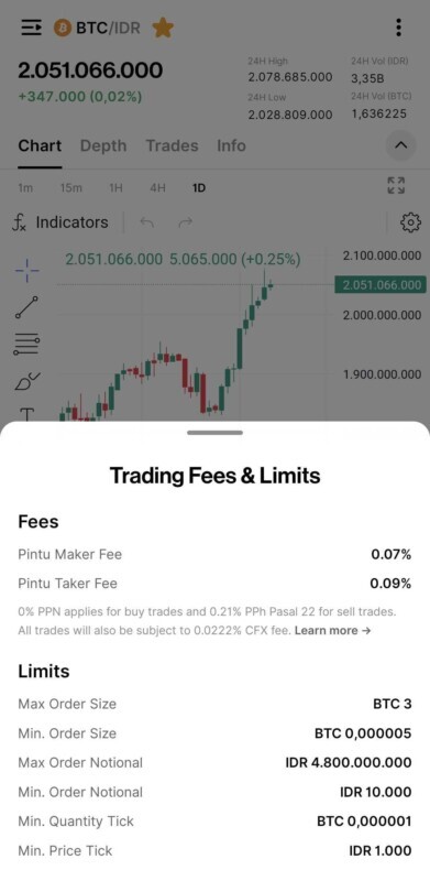 - Maker fee 0,07% dan taker fee 0,09%. Hemat lebih banyak, profit lebih maksimal.