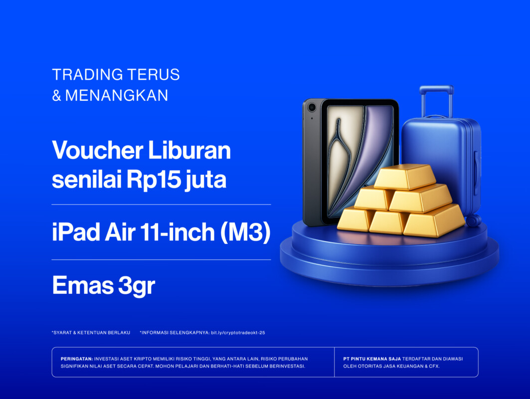 Hi Teman Pintu, tingkatkan terus trading volume-mu, dapatkan grand prize spesial berupa Voucher Liburan senilai Rp15 Juta, iPad Air 11 inch, dan 3gr Emas. Baca syarat dan ketentuan lengkapnya di sini!