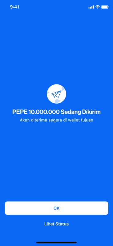 6. Periksa kembali semua detail transaksi (alamat, jumlah, jaringan), lalu konfirmasikan pengiriman dengan menggeser toggle atau memasukkan PIN mu.