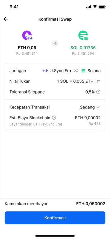 8. Lalu, kamu akan masuk ke laman ‘Konfirmasi Swap’. Setelah itu, jika semua sudah sesuai, klik Konfirmasi.