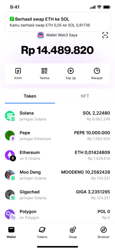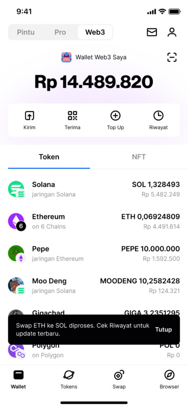 10. Selesai. Kamu akan menerima pop-notifikasi seperti gambar di bawah ini yang menunjukkan bahwa swap token telah berhasil dilakukan.