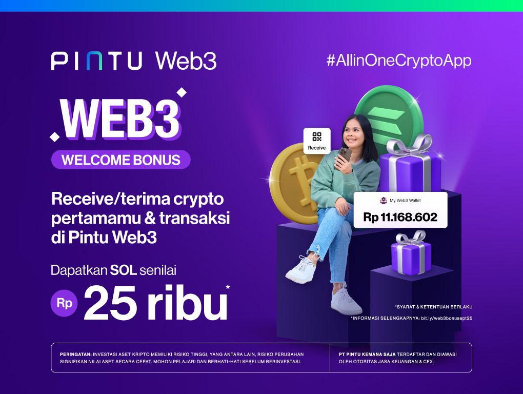 Hi Teman Pintu! Receive/terima crypto pertamamu di Pintu Web3, dan dapatkan Solana (SOL) senilai Rp25.000. Baca syarat dan ketentuan lengkapnya di sini!