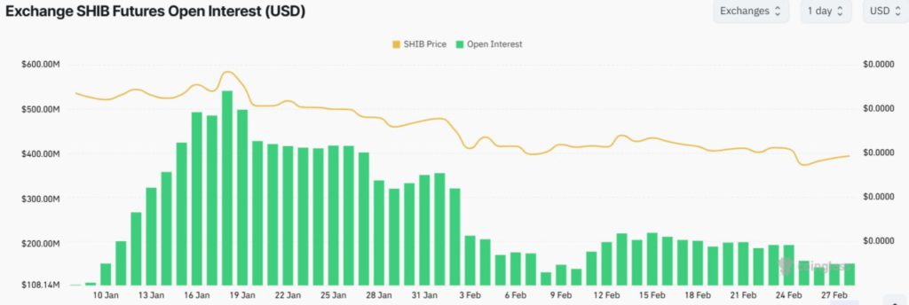 Data from Coinglass shows that SHIB’s open interest (OI) has dropped 70% in less than six weeks, from $541 million (IDR 8.83 trillion) to just $156 million (IDR 2.55 trillion). This significant drop in OI signals that many traders are closing their positions, reflecting bearish sentiment and a lack of confidence in a price recovery in the near future.