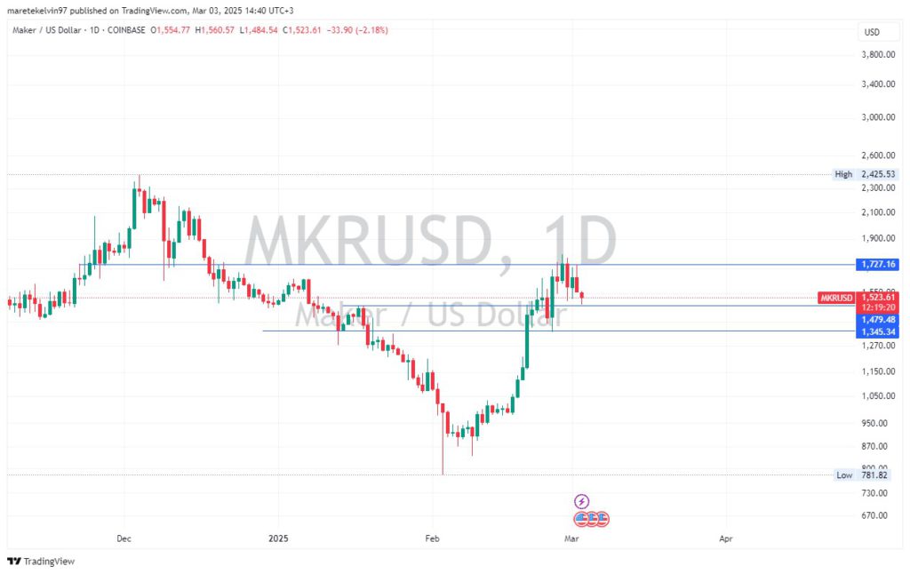 Jakarta, Pintu News – Maker is under significant selling pressure after experiencing a 10% drop in the last 24 hours. Currently, MKR is trading at around Rp24,301,600 ($1,473.92), based on data from CoinMarketCap.