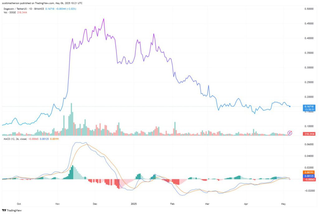 Jakarta, Pintu News – Dogecoin is currently trading at $0.169, showing a decline after reaching $0.19 in late April. Although there is some hesitation in the rally, the price structure being built by Dogecoin (DOGE) shows potential for further major moves.