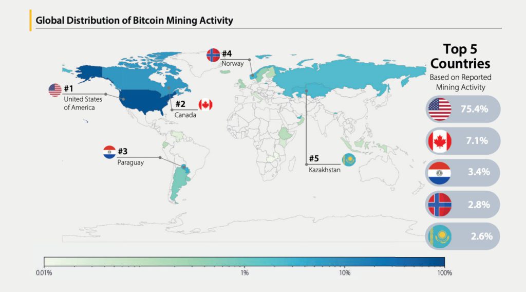 According to a recent report from the Cambridge Center for Alternative Finance (CCAF), the United States now controls 75.4% of the total global Bitcoin hashrate. This marks a major shift in the Bitcoin mining industry that was previously dominated by China. In 2017, China was a major leader in Bitcoin mining, utilizing low electricity costs and extensive mining infrastructure to control more than 75% of the world’s total hashrate.