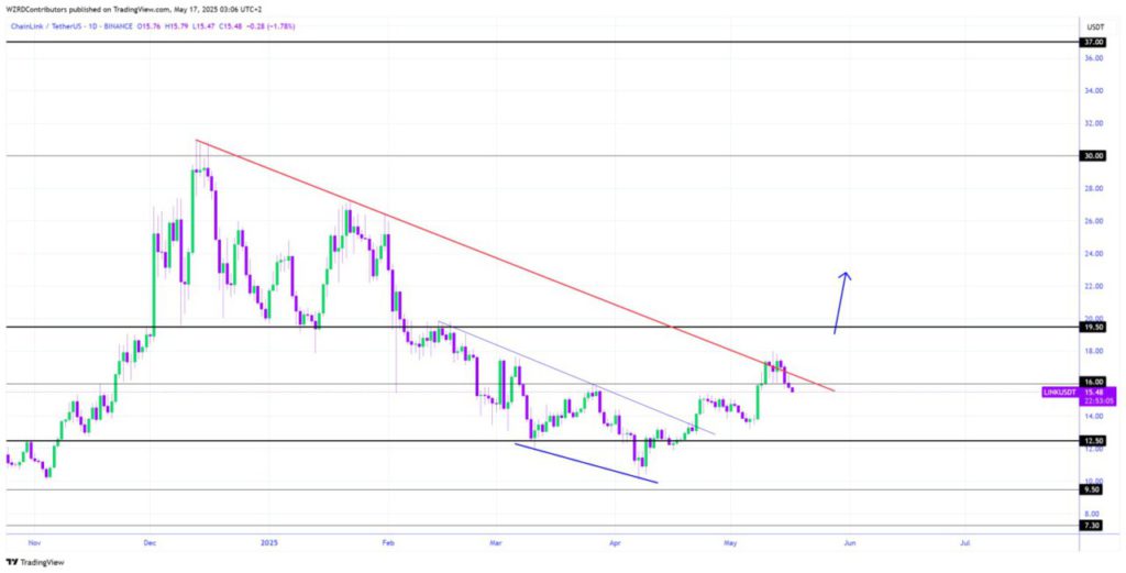 If Chainlink (LINK) manages to break above $19.50 decisively, CRYPTOWZRD forecasts a more substantial rally that could push the asset towards the $30 resistance level. However, this bullish outcome is contingent on consistent upside pressure and a healthy price structure to support the move.
