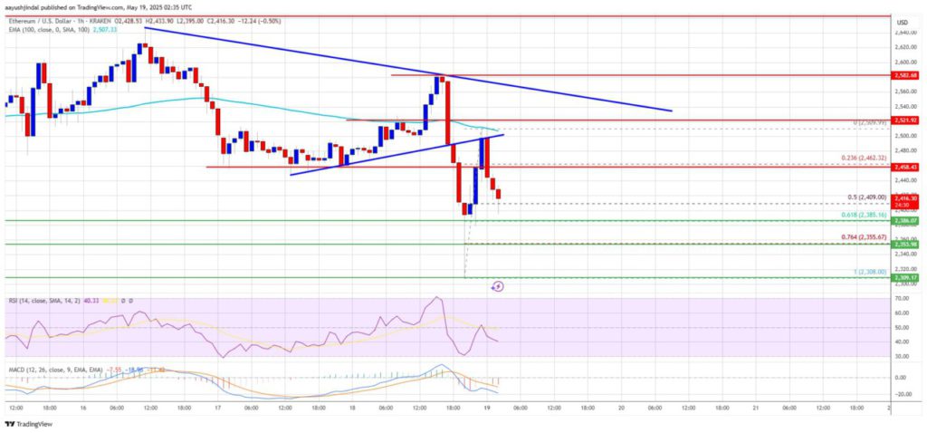 Ethereum started a price correction after reaching the $2,580 zone or around IDR 42,344,940 (assuming an exchange rate of $1 = IDR 16,413). Afterward, ETH dropped and tested support at $2,320 or around Rp38,097,560. This drop puts the price below the 100-hour simple moving average line and also below the key technical level of $2,500 (IDR 41,032,500).