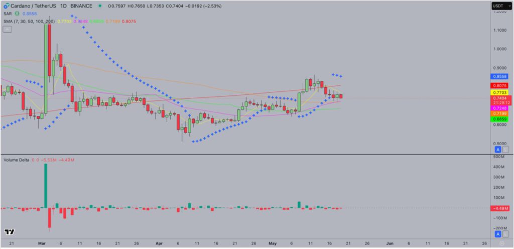 Jakarta, Pintu News – On Monday, May 19, the price of Cardano opened at $0.74, showing potential upside after Charles Hoskinson, founder of Cardano, confirmed a partnership in the DeFi sector with Litecoin . This news has driven positive sentiment in the market, with analysts predicting a significant impact on institutional adoption and increased liquidity.
