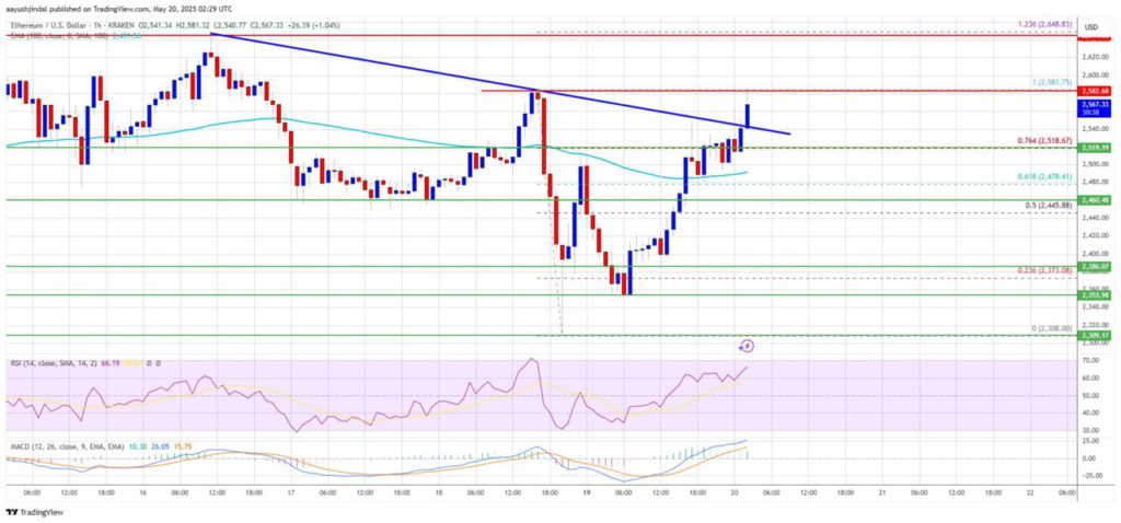 On the upside, prices may face resistance near the $2,580 level. The next key resistance is near the $2,600 level. The first major resistance is near the $2,650 level. If it manages to cross the $2,650 resistance, the price could head towards the $2,720 resistance. In case of a break above the $2,720 resistance, it might trigger further gains in the coming sessions. In that scenario, Ethereum (ETH) could rise towards the $2,780 or even $2,840 resistance zone in the near future.