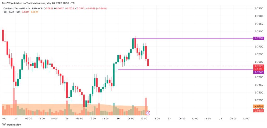 In the last 24 hours, Cardano (ADA) has increased by 1.35%. However, on the hourly chart, the price of ADA is showing a decline after failing to break the resistance at $0.7754. If the daily close is near or below the support, there is a chance that the price will try to reach the $0.75 range in the near future. This suggests that there is uncertainty in the market that might affect traders’ decisions.