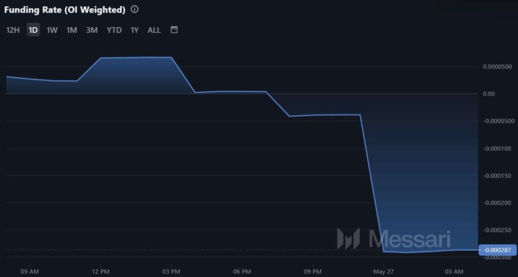 Despite the increase in price and volume, bearish sentiment was evident among futures traders. The Funding Rate hitting a monthly low showed strong bearish sentiment among futures traders. In addition, selling volume in the futures market was still higher than buying volume, with 6,000 sell orders compared to 3,000 buy orders, indicating that futures market participants were not very optimistic despite rising prices.
