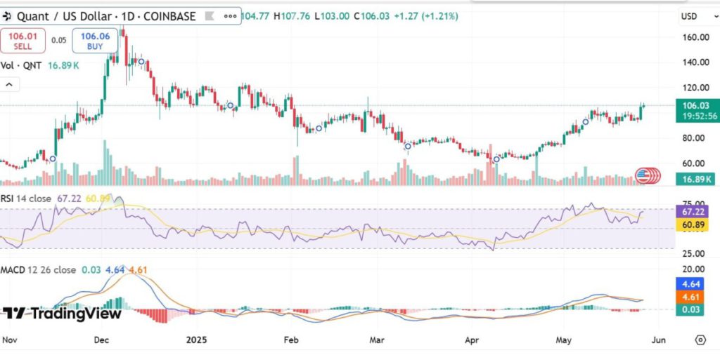 Jakarta, Pintu News – Quant recently recorded a significant gain of 10.65% to reach a three-month high. Despite this, market sentiment is still not fully bullish. In the past 24 hours, Quant (QNT) managed to bounce off a local low of $93 and reached $108, before dropping slightly to $106 at press time.