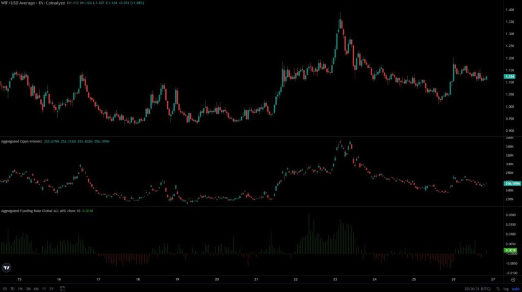 This shows that the price movements of Dogwifhat (WIF) cannot be separated from the influence of Bitcoin (BTC) price movements in the market. Additionally, the Open Interest (OI) on Dogwifhat (WIF) showed a decline from $350.6 million on May 23 to $256 million. This drop indicates that speculative traders prefer to stay on the sidelines and have exited their positions. Funding levels that had dipped into negative territory have also started to recover, signaling a change in market sentiment albeit still in a very early phase.