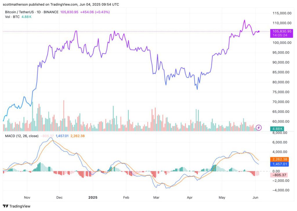 Jakarta, Pintu News – Bitcoin is currently in a consolidation phase with the price hovering around $105,500. Although it reached a daily peak of $106,807, the price has since stabilized. Bitcoin’s dominance in the crypto market, as measured by the BTC.D metric, seems to have hit a wall at 64% in recent weeks.