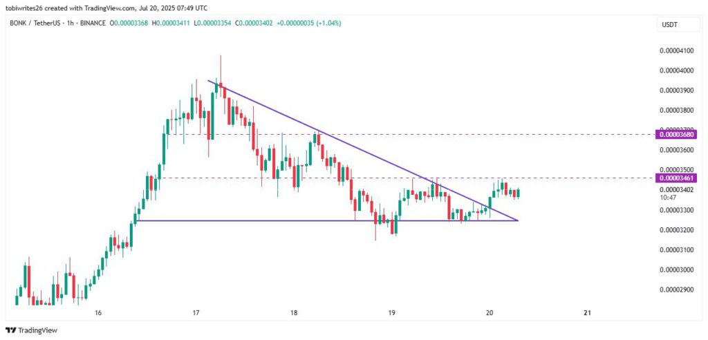 At the current rate of accumulation, Bonk (BONK) appears to be in a good position to reach those targets and possibly even continue its rally higher. This suggests significant growth potential if the current momentum can be maintained.