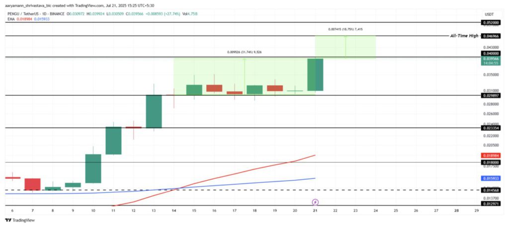 If PENGU manages to turn the $0.040 level into a stable support area, the rally could potentially continue, pushing the price of this altcoin closer to its historical peak.