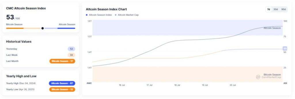 As Bitcoin (BTC) stabilizes and capital begins to flow into Ethereum , Solana , and other mid-cap tokens, altcoins tend to perform better. This indication is reinforced by the rising prices of several major altcoins. Ethereum, Ripple , and Solana have registered double-digit gains in the past week.