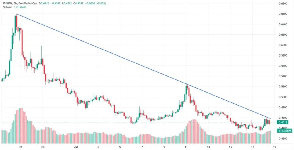 In mid-2025, the price of PI had dropped sharply to $0.44 from previously higher levels. This volatility was triggered by various factors, such as unclear timelines for the public mainnet launch, lack of adoption on major exchanges, and uncertainty around the project roadmap. In addition, speculative news and rumors in the community also magnified selling pressure in the secondary market.