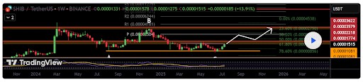 Maddox also highlighted SHIB’s retracement to the 0.786 Fibonacci ‘golden pocket’, which is usually a turning point for prices before resuming the uptrend. Despite the bearish divergence on the weekly RSI, Maddox believes that if SHIB breaks the key level, the potential for correction could be eliminated by the high price thrust.