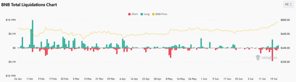 The fact that liquidation is still relatively low suggests that the current uptrend is quite strong and bulls’ involvement is increasing. Assuming the bulls manage to maintain the momentum, Binance Coin (BNB) could try again to test its upper levels in the range of $785 to $800.