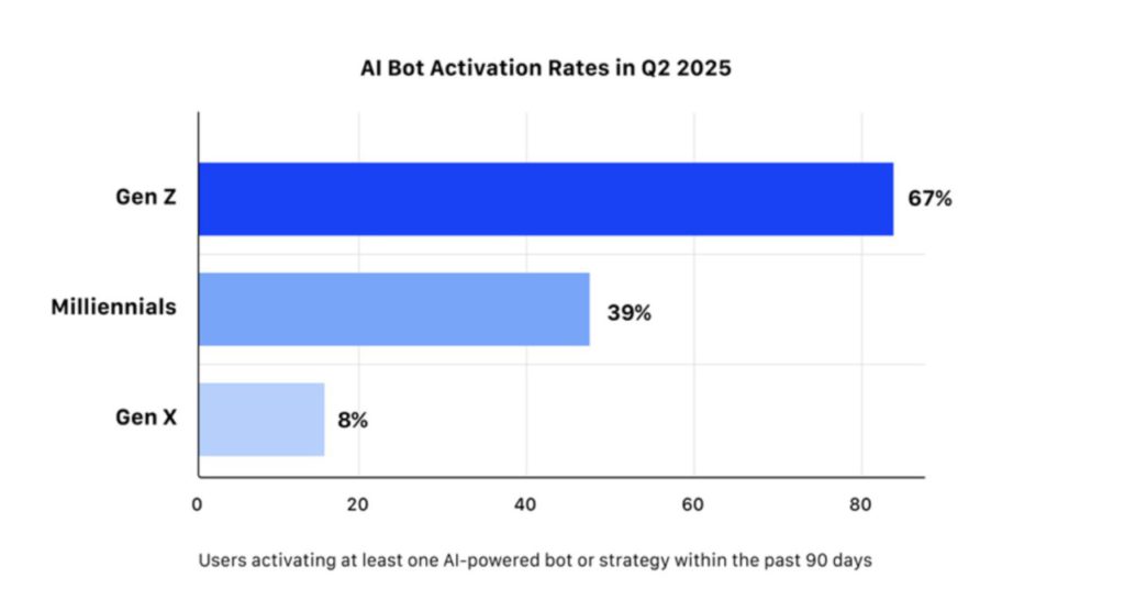 Generation Z is not only using AI for convenience, but also to reduce emotional bias and make strategic decisions in volatile market conditions. A report from MEXC shows that two-thirds of Gen Z users have enabled at least one AI bot or rule-based strategy in the past 90 days.