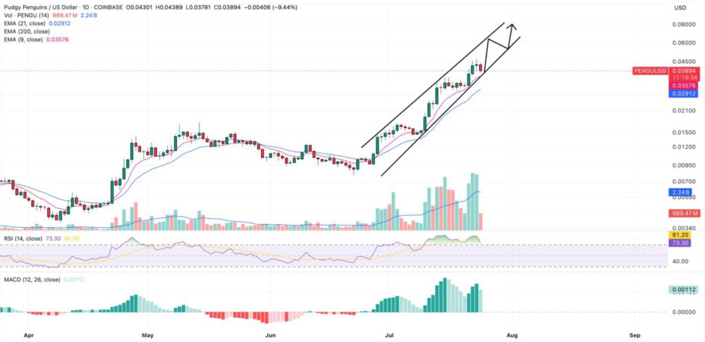 Pengu comes as the official token of the widely recognized NFT Pudgy Penguins community in the Web3 ecosystem. In the past few days, Pengu’s price has skyrocketed by more than 400% in just a few hours, signaling a great deal of interest and FOMO (fear of missing out) in the crypto market. This increase is attributed to the solid community support and virality of the Pudgy Penguins project, which has been active in the NFT space.