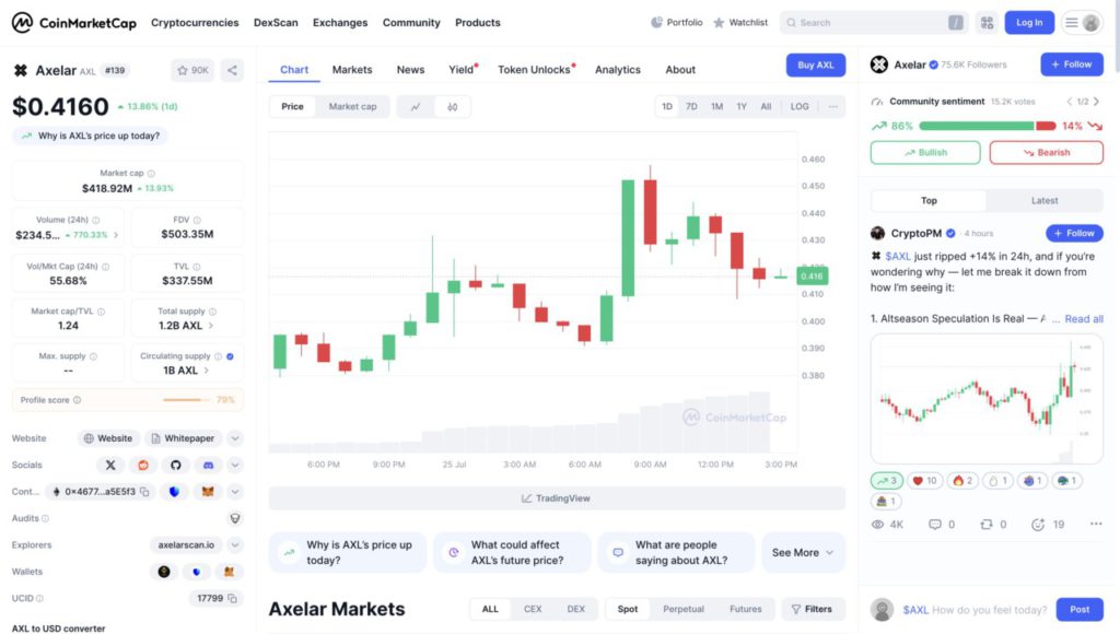 Community sentiment towards AXL is also very positive, with 86% of votes bullish. This sharp rise is thought to have been triggered by speculation of a returning altseason, as also shared by analysts on social platform X.