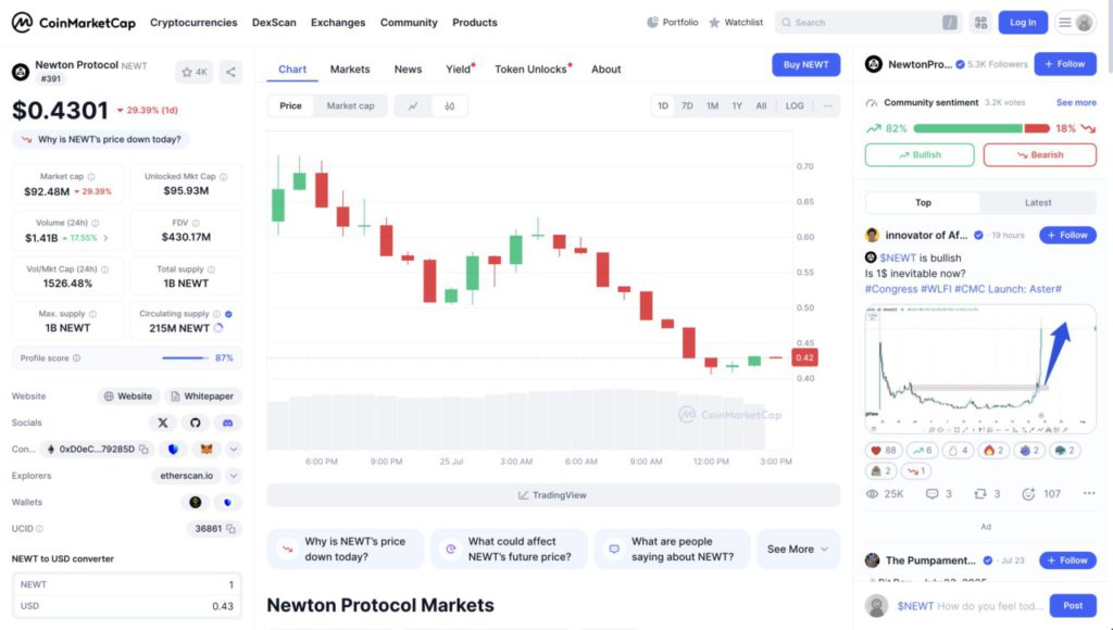 Technically, the chart shows a gradual downward pattern with a predominance of red candles, signaling a loss of buying momentum and the emergence of strong selling pressure. This decline also caused NEWT’s market capitalization to drop drastically to $92.48 million, although community sentiment is still relatively positive, with 82% voting bullish.