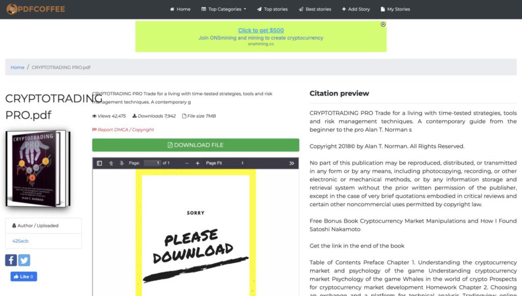 PDF link: available on pdfcoffee under the title CRYPTOTRADING PRO.