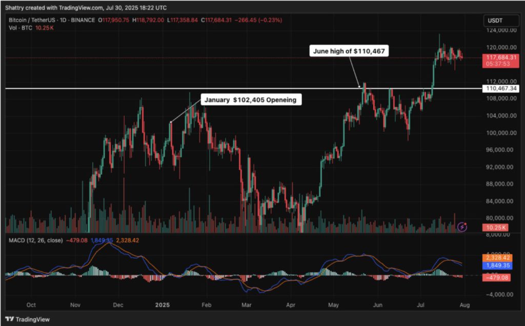 Jakarta, Pintu News – Bitcoin is now at a crucial point, trading at Rp1,935,969,232 ($117,832.50), just slightly below its all-time high.
