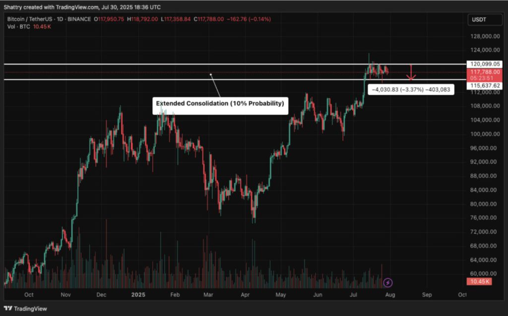 Consolidation Scenario (10%): BTC remains in a narrow range of Rp1,890,000,000-Rp1,971,000,000 ($115,000-$120,000) for 45-60 days. This is an accumulation opportunity for institutions before the price resumes its uptrend.