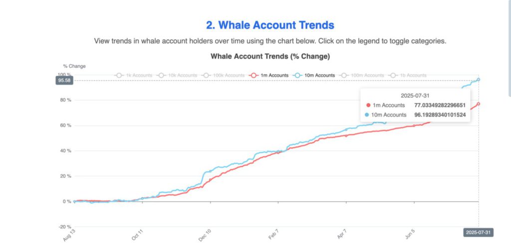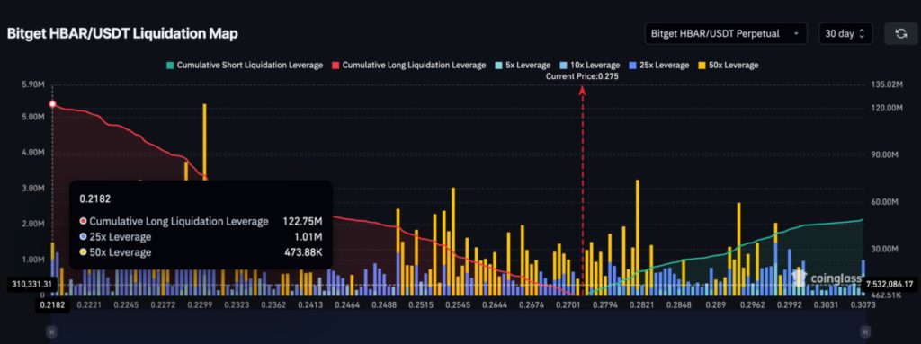 On-chain data shows that large holders with more than 1 million HBAR tokens increased their share from 64% to 77% in July. Meanwhile, holders with more than 10 million tokens accounted for 96% of the total supply. This steady accumulation was the main driver of the gains in July. However, with whale dominance already very high, the possibilities are limited for fresh capital that can maintain the same pace in August.