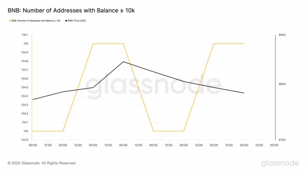 Glassnode data shows a sharp spike in the number of addresses holding at least 10,000 BNB in recent days. If this accumulation pattern continues, analysts believe BNB could break another new price record in the near future. However, if the whales stop buying, there is a risk of a correction that crypto investors should be aware of.