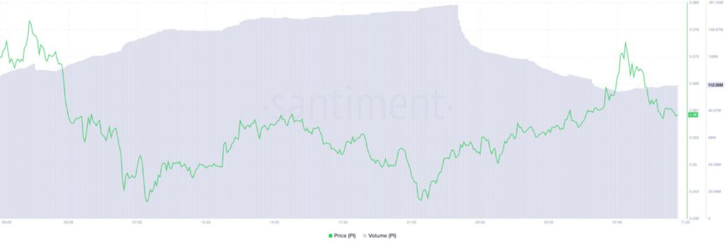 After falling to US$0.32 (IDR5,242), PI rebounded 4% to US$0.36 (IDR5,897) in the last 24 hours. However, behind this brief surge, there was a 30% drop in trading volume to around US$112 million (IDR1.83 trillion).