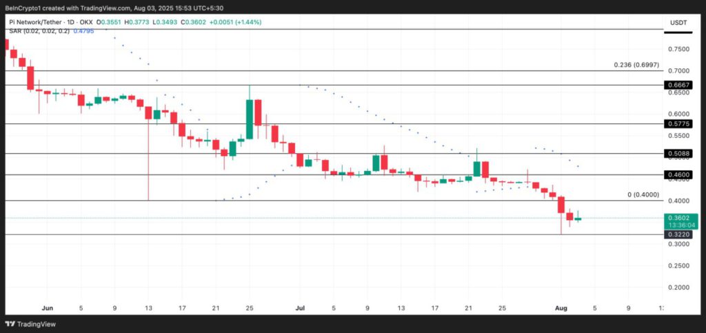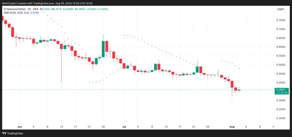Jakarta, Pintu News – Pi Network (PI) started August 2025 on a bitter note: the token price plummeted to an all-time low of US$0.32 (~Rp5,242). Although it had corrected upwards to US$0.36 (IDR5,897), the bearish sentiment is still looming. So, will Pi Network be able to recover or will it slump further? Here are five crucial facts that you must know before deciding to invest in this crypto.