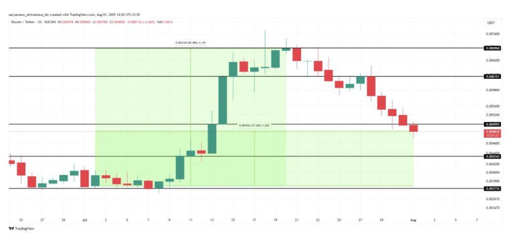 An increase above $0.0049 could push the price towards $0.0061, strengthening its upside momentum. However, if the selling continues, the TEL may fall below the critical $0.0043 support, which could bring the price down to $0.0037 and thwart the bullish thesis.