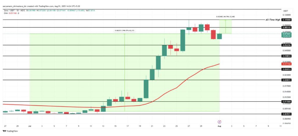 Zora (ZORA) has been one of the best performers in the cryptocurrency market this month, with an astonishing gain of 748% in the last five weeks. This surge has placed ZORA among July’s top performing tokens, making it a noteworthy altcoin for potential future gains in a volatile market.