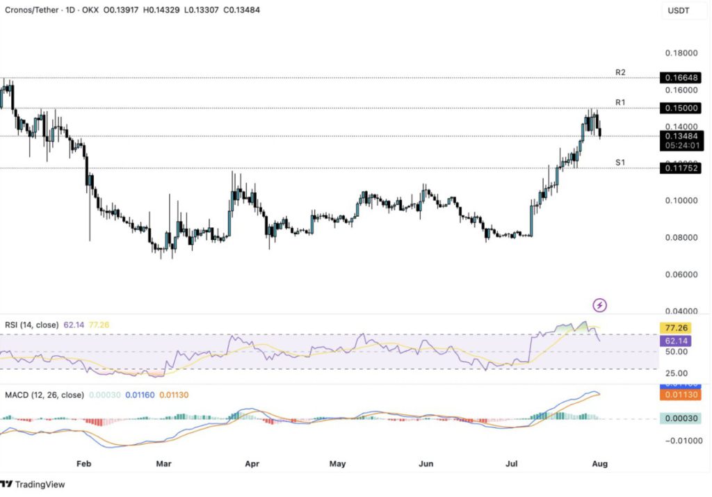 Traders are advised to monitor RSI and daily candle movements. If CRO is able to close daily above $0.13881, the opportunity to continue the rally is open. Conversely, if a correction occurs, the token could test the $0.11752 support area before moving back up.