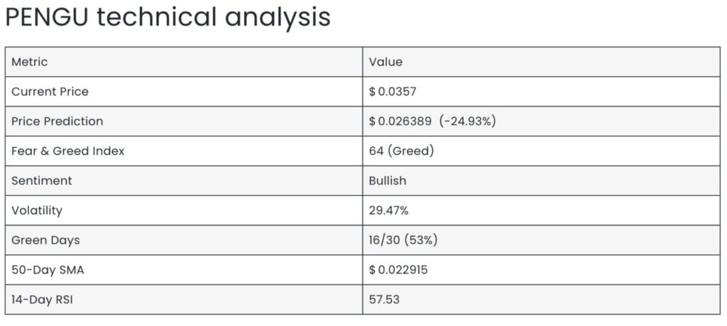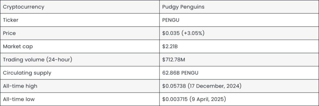 Jakarta, Pintu News – Pudgy Penguins is back in the spotlight after showing steady buying pressure around $0.035 . Supported by a strong NFT brand and a new roadmap, PENGU’s price has the potential to rise significantly. So, what are the opportunities and risks of this crypto investment for 2025 to 2031? Here’s the latest analysis and price projections!