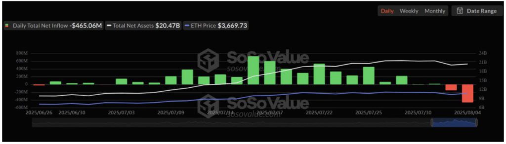 At the same time, the Ethereum ETF recorded the largest outflow of funds since its launch at $465 million, signaling a change in investor sentiment.