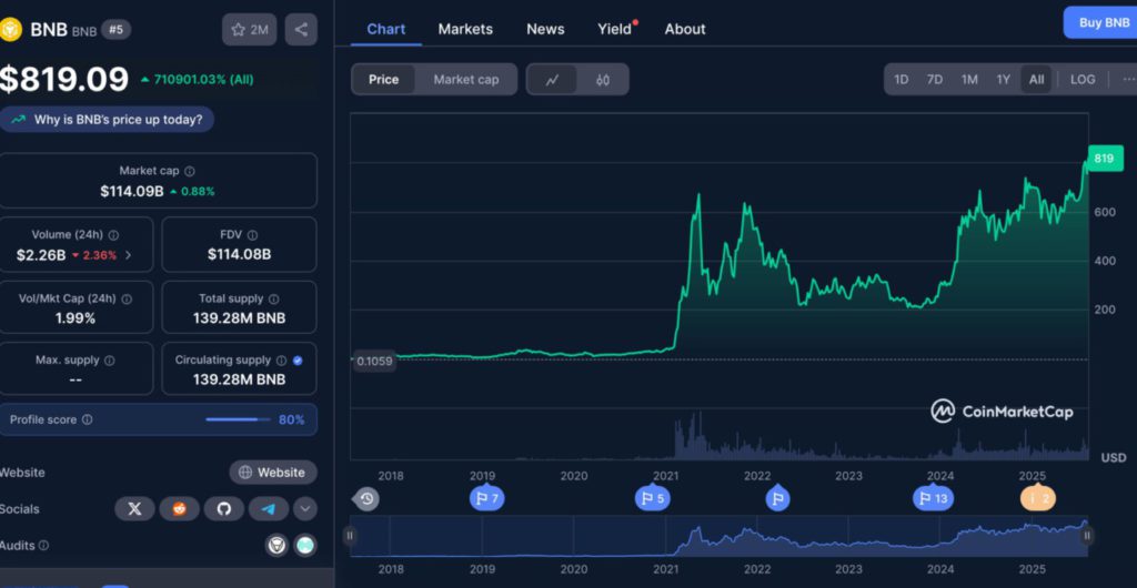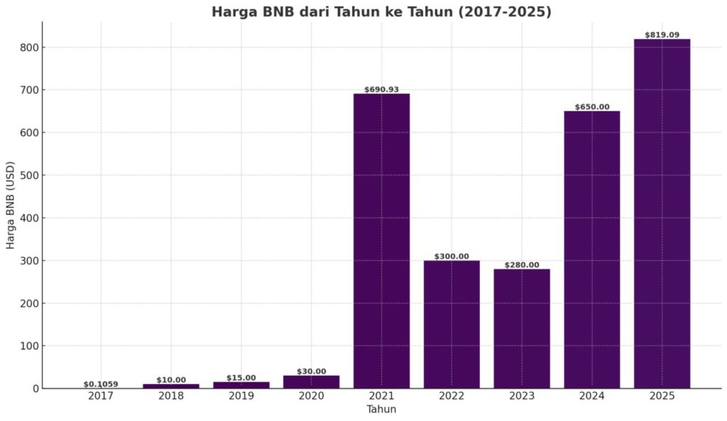 In 2025, BNB scored a new high this year at $819.09 (IDR 13.29 million) thanks to the expansion of the Binance ecosystem, the launch of new projects on BSC, and the overall bullish performance of the crypto market.
