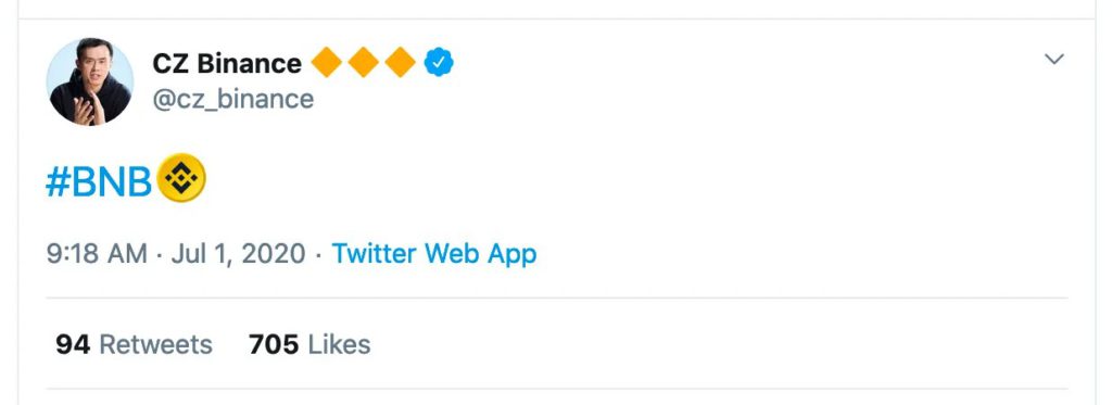 In April 2019, Binance released Binance Chain, their own proprietary blockchain, and moved BNB from the Ethereum network (ERC-20) to Binance Chain (BEP-2). This change increased BNB’s utility as it began to be used to pay on-chain transaction fees, pushing the price to stabilize around $15.